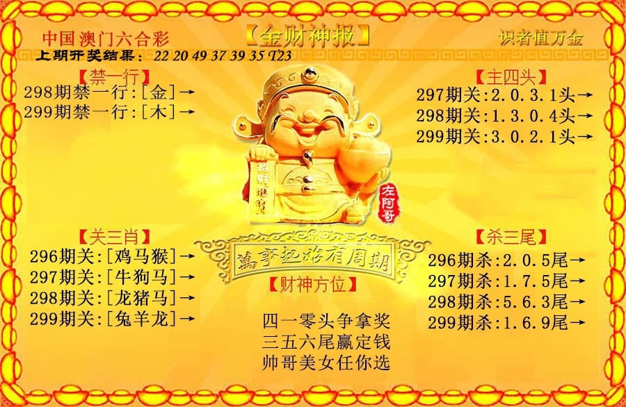299期:财神出品 【二肖4码】庄家是你的摇钱树